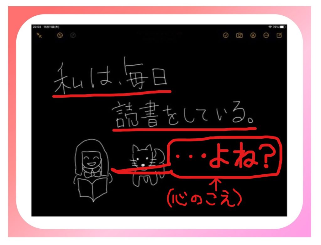 ごちゃごちゃ書いてありますが、兎に角今日書いたのは、写真の右下の部分(食べた物が~)です。(分かりにくいと思いますが…)要約すると「読書をしたい」と書いてあります。