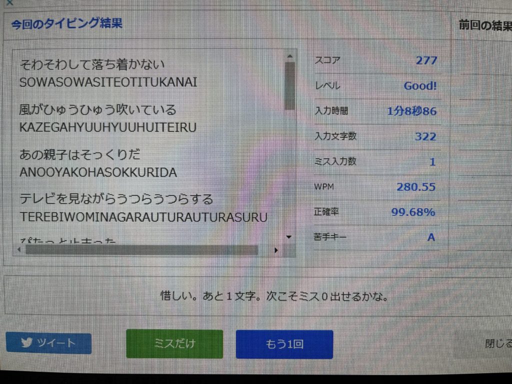 あと、面接で重要なのはタイピングじゃないからw(努力するトコそこじゃない感)
