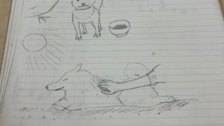 治験中暇で、持ってきた本も北朝鮮の本ばっかりで暗い気持ちになったので、お絵描きをする事にしました。 下記の2つの犬の絵は、飼っていた犬をイメージしました。 餌は無機質なドッグフードで、不味そうでした。 外飼いだったから全然触れ合えなくて、散...