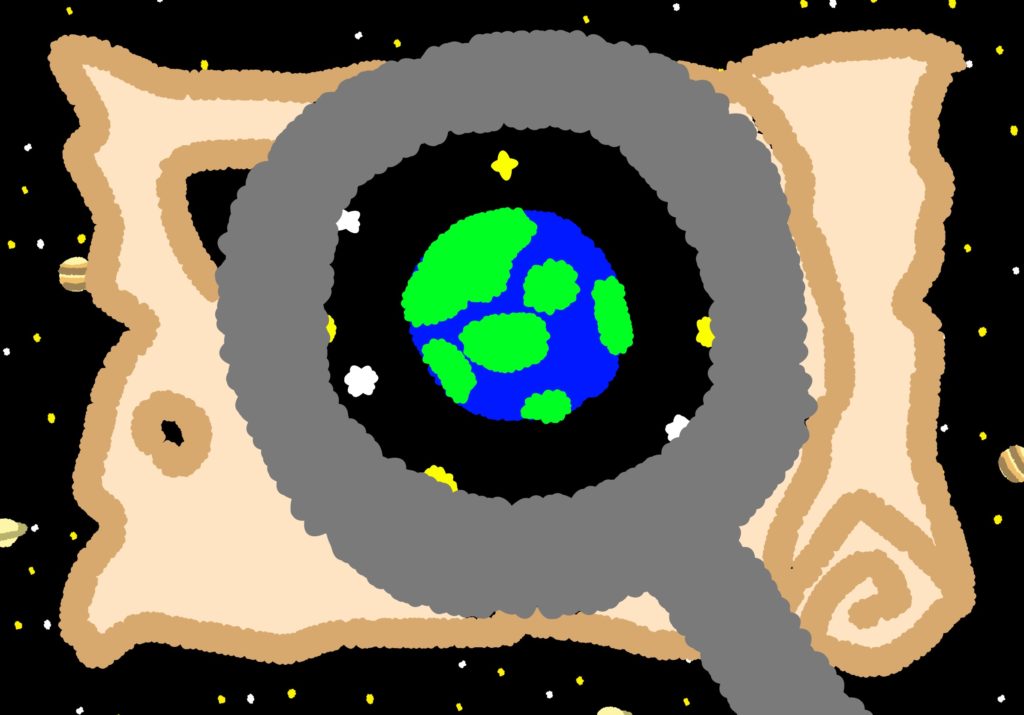 宇宙でプカプカ浮かんでいたベータは、ある思いを託して、地球を創りました。石と石をぶつけ大きくしていき、水を与え、私達の美しい地球を創ったのです。ベータは、私達の神です。