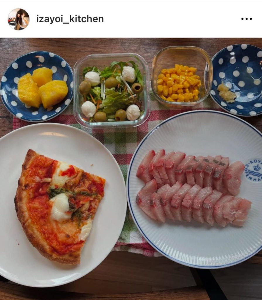 代わりに、主食は、芋やうどん、お餅、ピザを食べています。