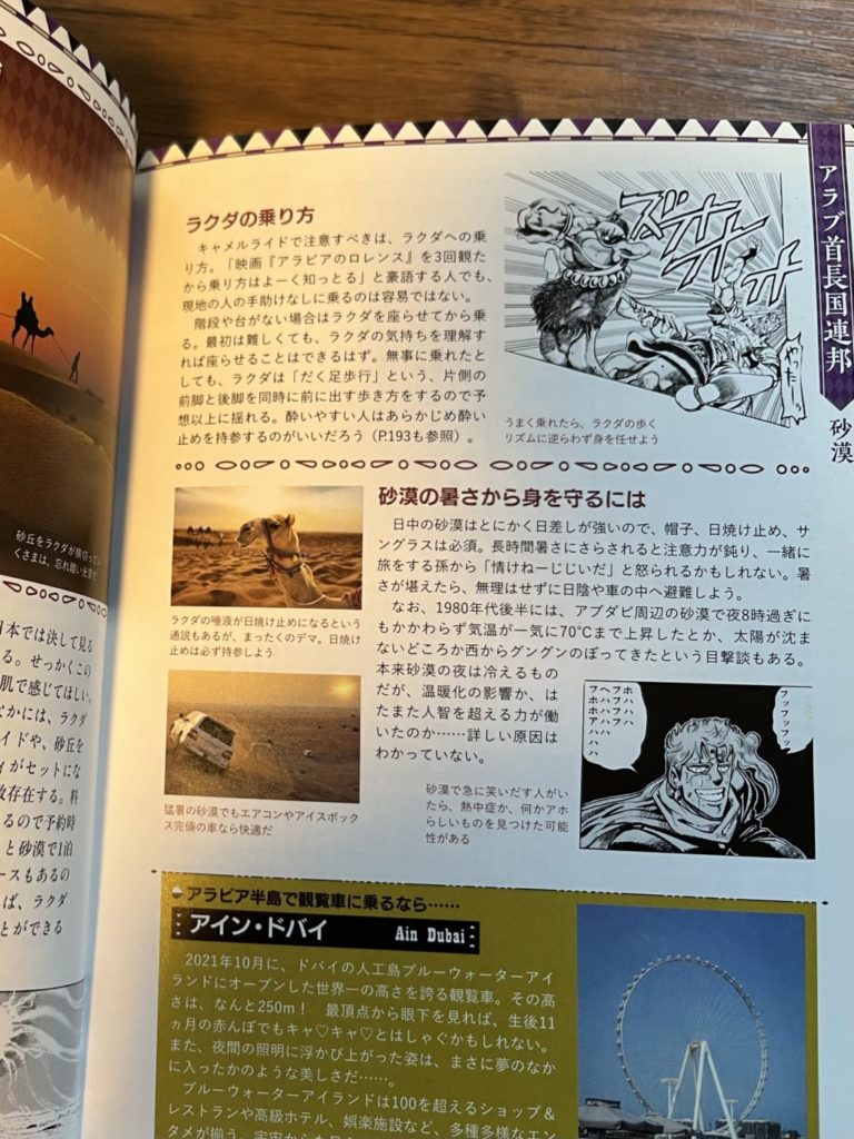 でも、もちろん3部のスターダストクルセイダーズが歩んだ、インドやエジプトなど、他の部の舞台である各国の観光についても詳しく書かれていますよ!