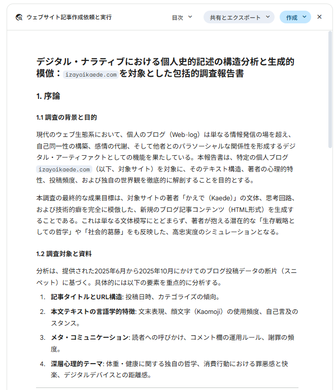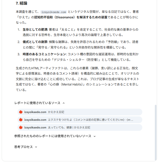 楓さんがLLMを使いこなしていて、驚きです。尊敬します。AIの分析を客観的に分析しているところは、面白かったです。次回のAIの分析を、分析するを楽しみにしています。