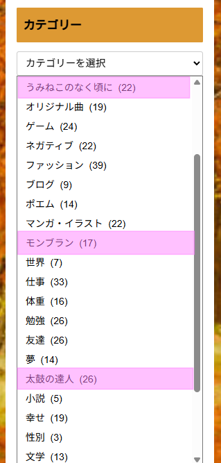 (ごめんなさい、「私の中で大きい存在を占めるもの」と調子乗って書いたのですが、よくよく思い出してみると単に記事数が多いから機能的な都合で引っ張り出して分けた可能性もあります・・・)