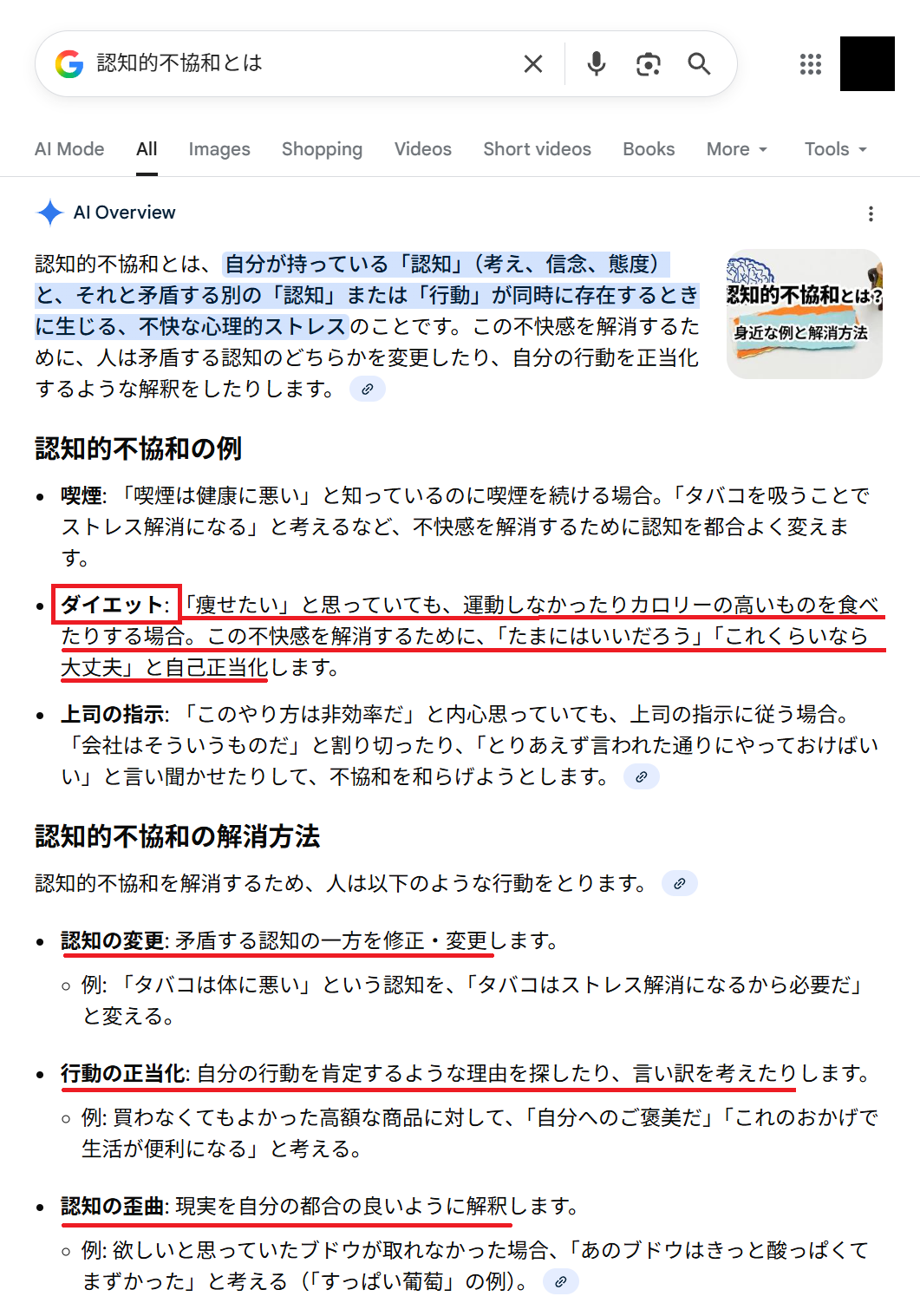 最初に書いてある「認知的不協和」ってどういう意味だろう・・・